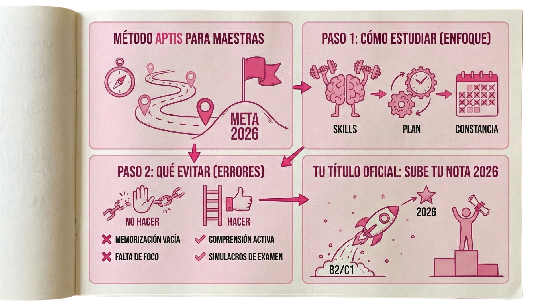 Ha ayudado a miles de alumnas a aprobar Aptis en meses con un método claro, sencillo y pensado para personas que siempre han creído que “el inglés no era lo suyo”.